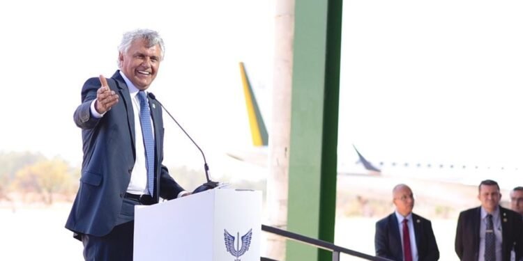 Ao lado do presidente Jair Bolsonaro, o governador Ronaldo Caiado esteve em sua terra natal, Anápolis, nesta quarta-feira (4/9), para participar da entrega do avião modelo KC-390 à Força Aérea Brasileira (FAB). “É o avanço da tecnologia que aponta novos métodos. Anápolis recebe o que existe de mais moderno no mundo”, destacou o governador durante a cerimônia na Ala 2 – Base Aérea de Anápolis.