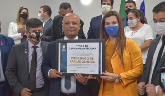 O deputado federal Major Vitor Hugo (PSL), recebeu na manhã desta quarta-feira (07), o título de cidadão anapolino, outorgado pela Câmara de Vereadores do município. A honraria foi proposta pela vereadora Thaís Souza (PP), e aprovada por unanimidade em plenário.