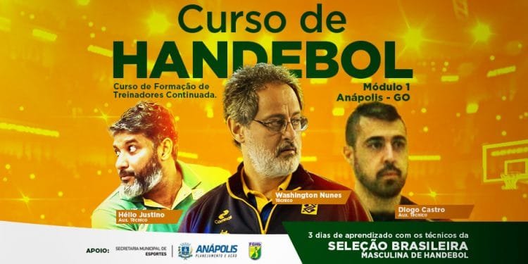 Entre os dias 17, 18 e 19 de maio acontece em Anápolis o 1º módulo do Curso de Handebol – Formação de Treinadores Continuada. A capacitação, realizada pela Prefeitura em parceria com a Federação Goiana de Handebol (FGH), será ministrada pelos maiores nomes do esporte a nível nacional, os técnicos da Seleção Brasileira Masculina de Handebol: Washington Nunes (técnico); Hélio Justino (aux. técnico) e Diogo Castro (aux. técnico).