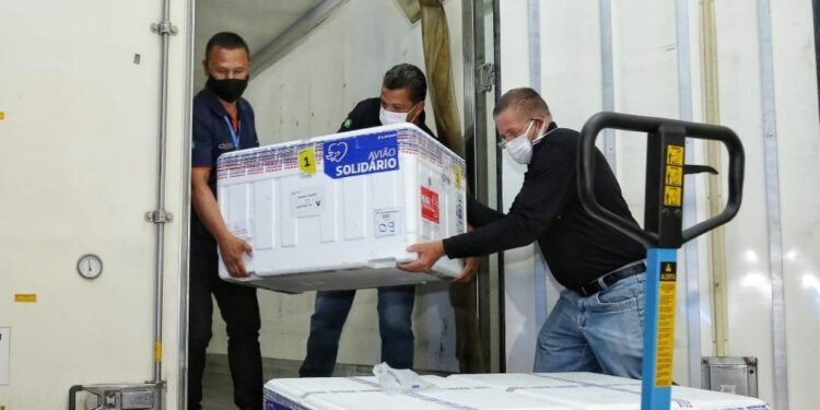 Goiás recebeu 134.400 mil novas doses da vacina Coronavac, que chegaram em um voo comercial no Aeroporto Internacional de Goiânia, na madrugada desta quarta-feira (17/03). A distribuição faz parte da Campanha Nacional de Vacinação contra a Covid-19, do Ministério da Saúde. Após o desembarque os imunizantes foram armazenados na Central Estadual de Rede de Frio, unidade da Secretaria de Estado da Saúde de Goiás (SES-GO), também na capital. As doses passam por uma conferência técnica e, já a partir das 13h desta quarta-feira, começam a ser distribuídas às 18 Regionais de Saúde e, proporcionalmente, para todos os municípios goianos.