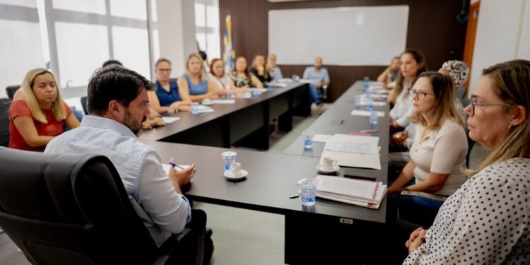 Além das representantes do Sinpma, participaram da reunião a secretária de Educação, Adriana Rocha, e o vice-prefeito, Walter Vosgrau (MDB).