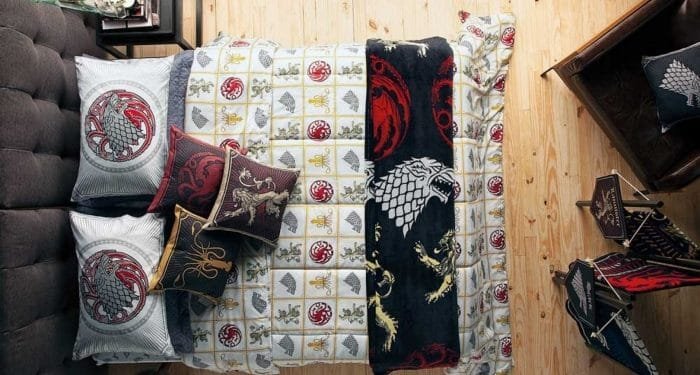 Entre os destaques estão a manta com capuz inspirada na patrulha da noite, as flâmulas de parede, que trazem alguns brasões dos reinos presentes na série – Targaryen, Lannister e Stark. O mix ainda é composto por capacho, jogo de cama, edredom, almofadas e toalhas que representam o universo dos Sete Reinos com lemas das casas que batalham para conquistar o Trono de Ferro.