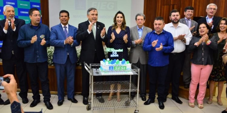 O presidente da Fieg, Sandro Mabel, participou da comemoração dos 56 anos da unidade Sesi Jundiaí, em Anápolis, realizada nesta terça-feira (06/08). O evento reuniu parlamentares, empresários, professores, alunos e diretores da Federação. Na ocasião, Sandro Mabel anunciou a ampliação da unidade, que terá laboratórios, espaço de conveniência e novos vestiários. “Vamos melhorar e modernizar a estrutura física da unidade para oferecer maior comodidade aos alunos e professores, sempre buscando aprimorar a formação para o mercado de trabalho, com foco nas indústrias”, disse.