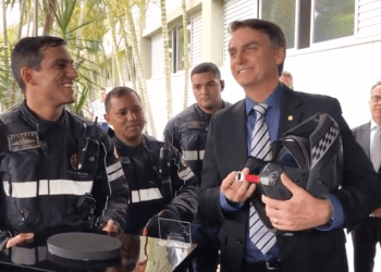 O presidente eleito, Jair Bolsonaro (PSL), foi homenageado por agentes da Polícia Militar do Distrito Federal, em Brasília, nesta quinta-feira ...
