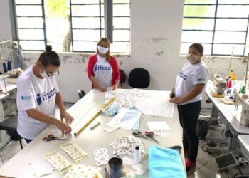 Alunas do curso de Corte e Costura da Rede Itego confeccionam máscaras para doação durante pandemia da Covid-19