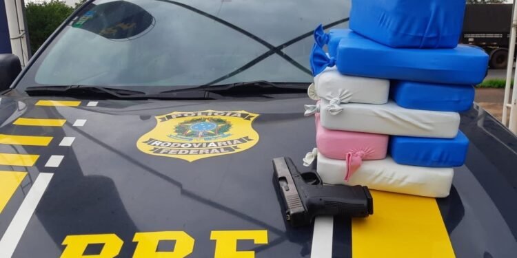A PRF prendeu duas passageiras de um ônibus interestadual, transportando 13kg de pasta base de cocaína e uma pistola na bagagem. O flagrante aconteceu na manhã de hoje (12), na BR 060, unidade da PRF em Rio Verde, no sudoeste goiano. No projeto “Em Frente Brasil”, do Ministério da Justiça, a PRF é responsável por fechar o cerco às divisas do estado, inibindo a entrada de armas e drogas.